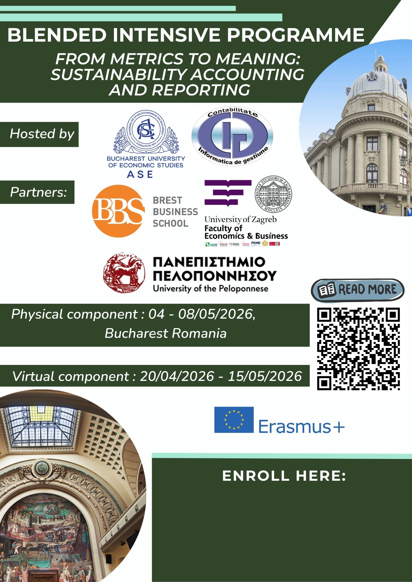 Πρόσκληση υποβολής αίτησης υποψηφιότητας για κινητικότητα προπτυχιακών φοιτητών/τριών, στο πλαίσιο του προγράμματος Erasmus+ Εντατικό Πρόγραμμα Βραχυχρόνιας Μικτής Κινητικότητας (Blended Intensive Programme - BIP) που διοργανώνεται από το Πανεπιστήμιο Οικονομικών Σπουδών Βουκουρεστίου (ASE), στην πόλη Βουκουρέστι της Ρουμανίας με τίτλο «From metrics to meaning: Sustainability accounting and reporting».